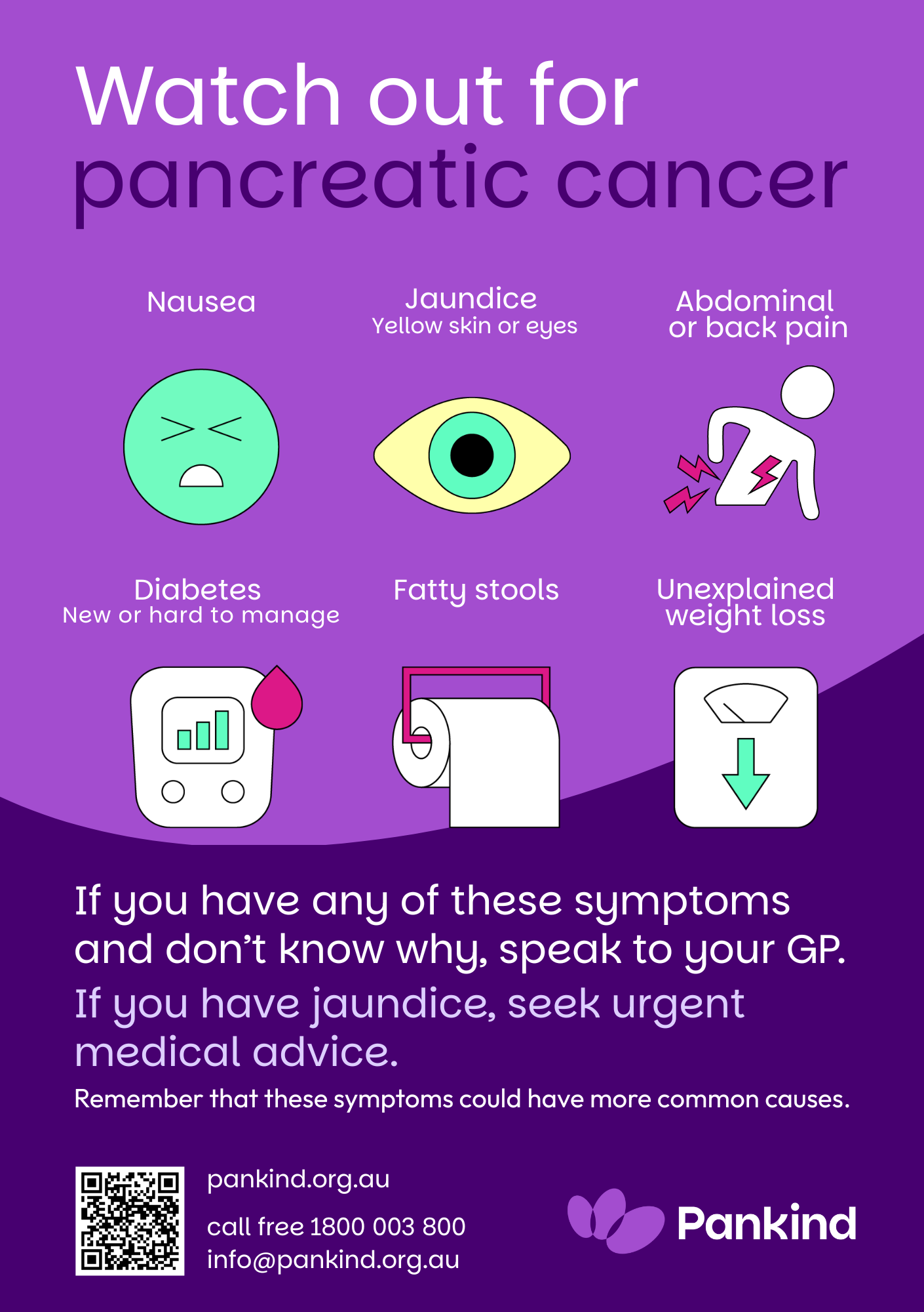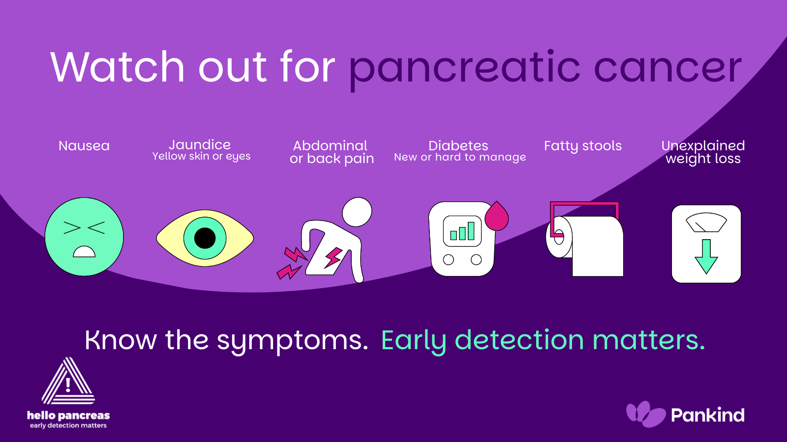 Awareness saves lives. The earlier pancreatic cancer is found, the more options people have for treatment. That’s why we’ve created resources you can share across your platforms and with your networks, to spark conversations, highlight symptoms, and encourage action.